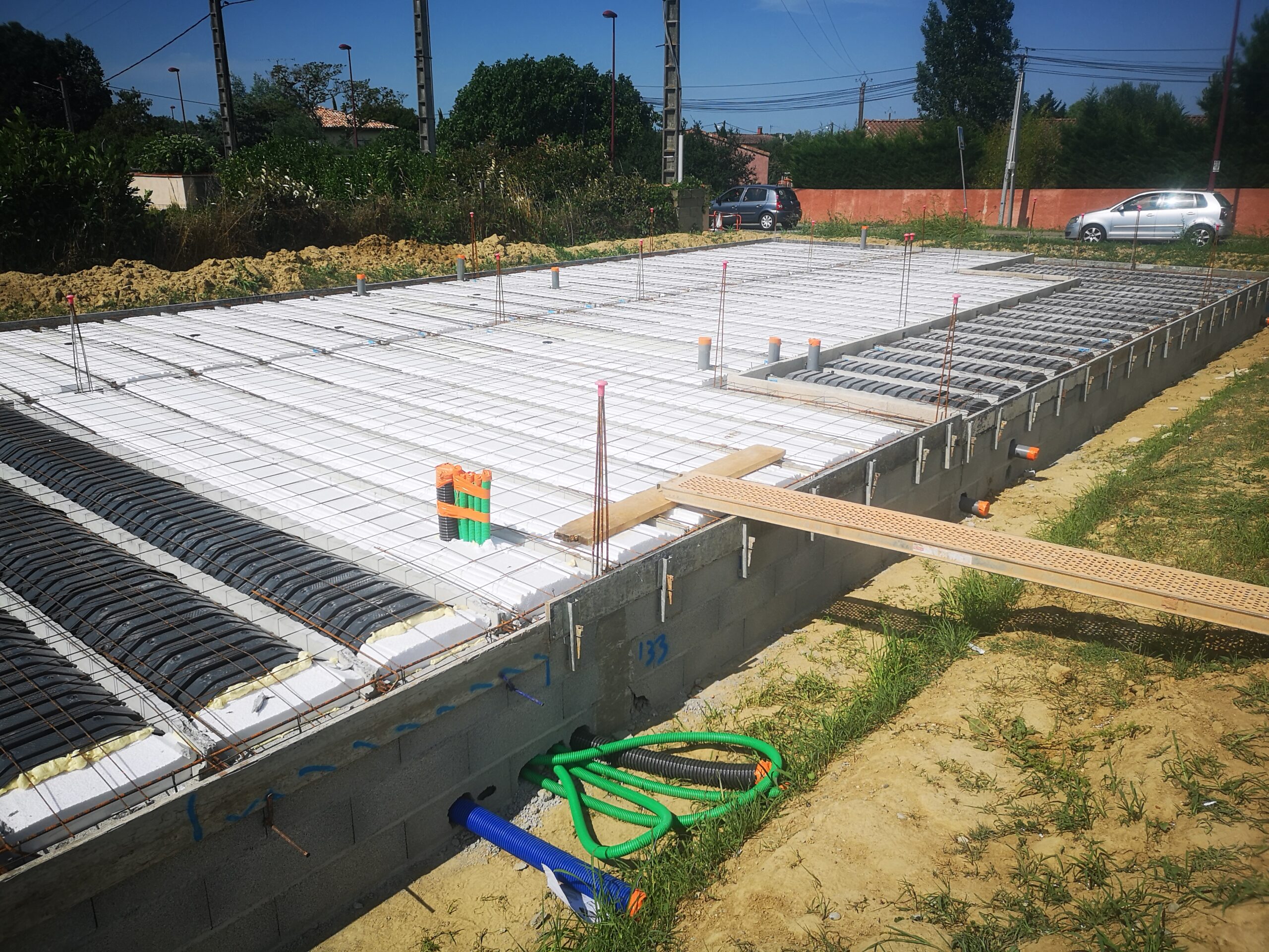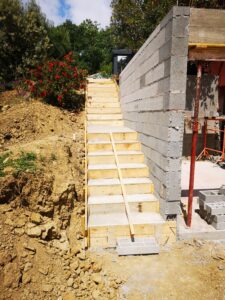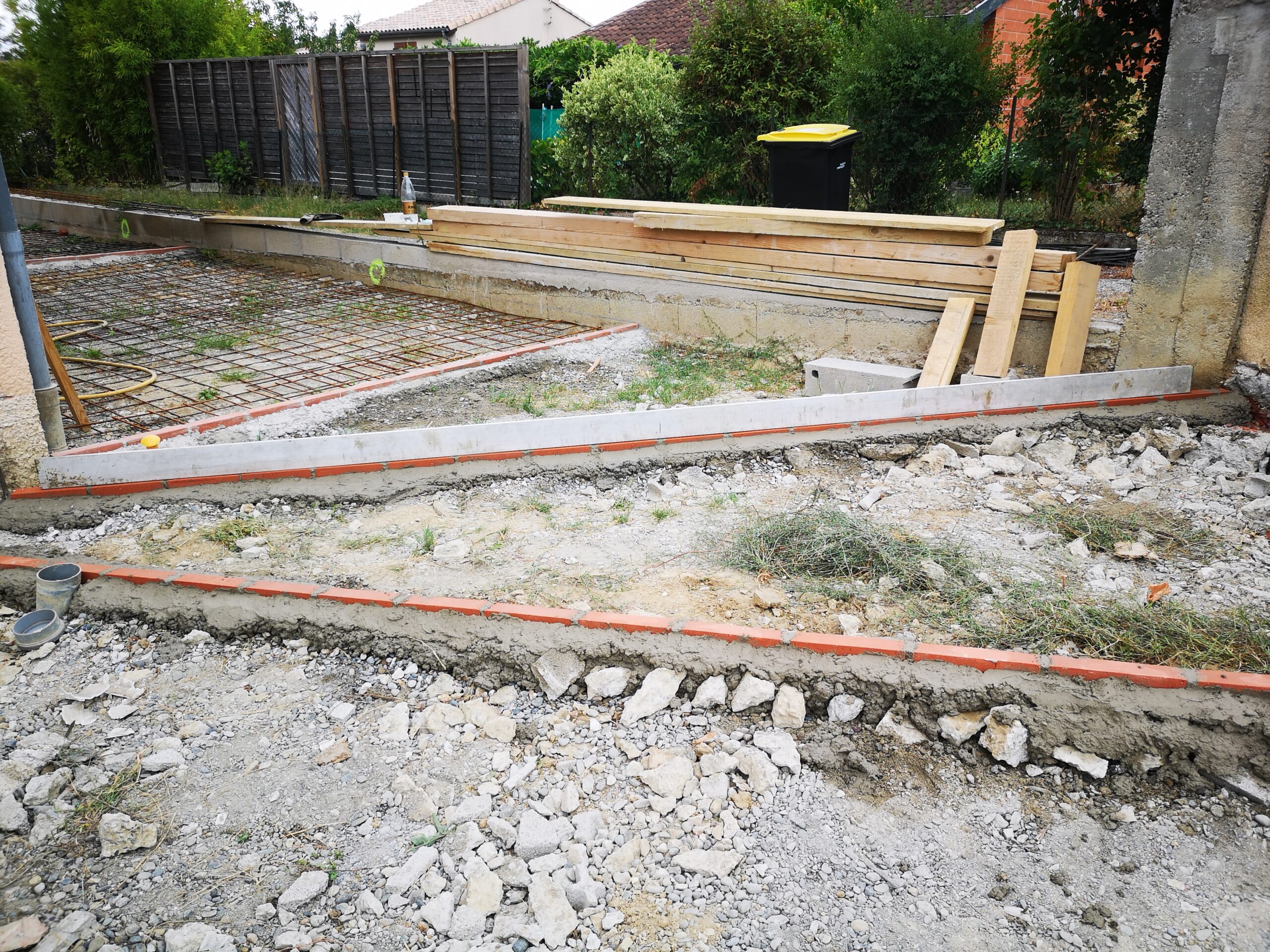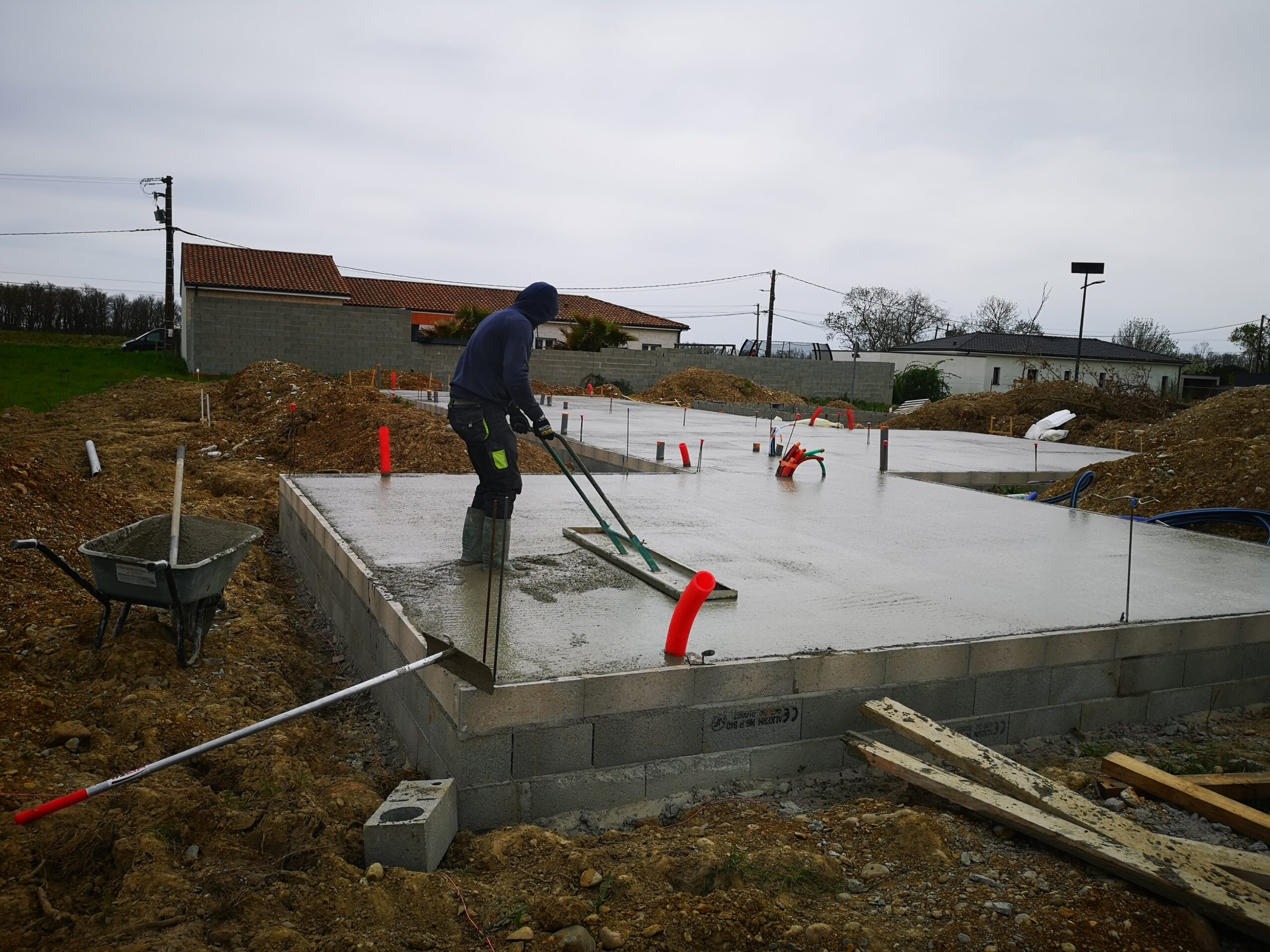 - Préparation du chantier : Préparation de la zone de construction, excavation et coulage des fondations en béton.
